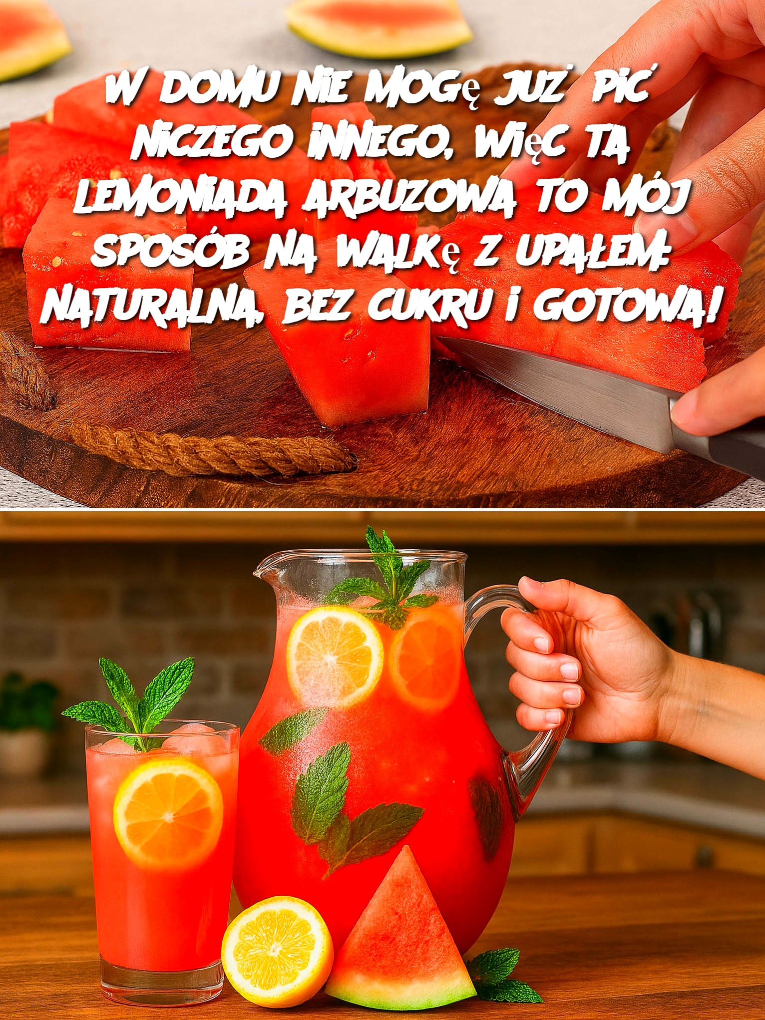 W domu nie mogę już pić niczego innego, więc ta lemoniada arbuzowa to mój sposób na walkę z upałem: naturalna, bez cukru i gotowa!
