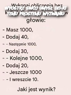 Wyobraź sobie serię prostych dodatków: 1000 + 40 + 1000 + 30 + 1000 + 20 + 1000 + 10 . Odpowiedź wydaje się oczywista, prawda? Jednak wiele osób uważa, że łączna liczba jest błędna i wynosi 5000 zamiast 4100 . Ale po co to zamieszanie?